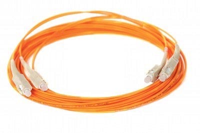 10 metre 62.5 micron multimode fibre optic cable terminated with SC connectors at both ends, for use as a patch lead in networks employing optical fibre cable infrastructure. The cable has orange sheathing.